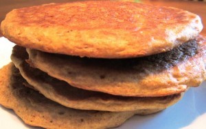 Heat a nonstick frying pan or griddle over medium-low heat. Spray with oil or cooking spray and spoon approximately ½ cup of batter into pan. Cook until batter is set and bubbles appear around edges. Gently flip pancake and cook on second side a few minutes more until brown. Remove pancake to a plate and keep warm. Continue making pancakes until all batter is used. Serve with maple syrup or other toppings.