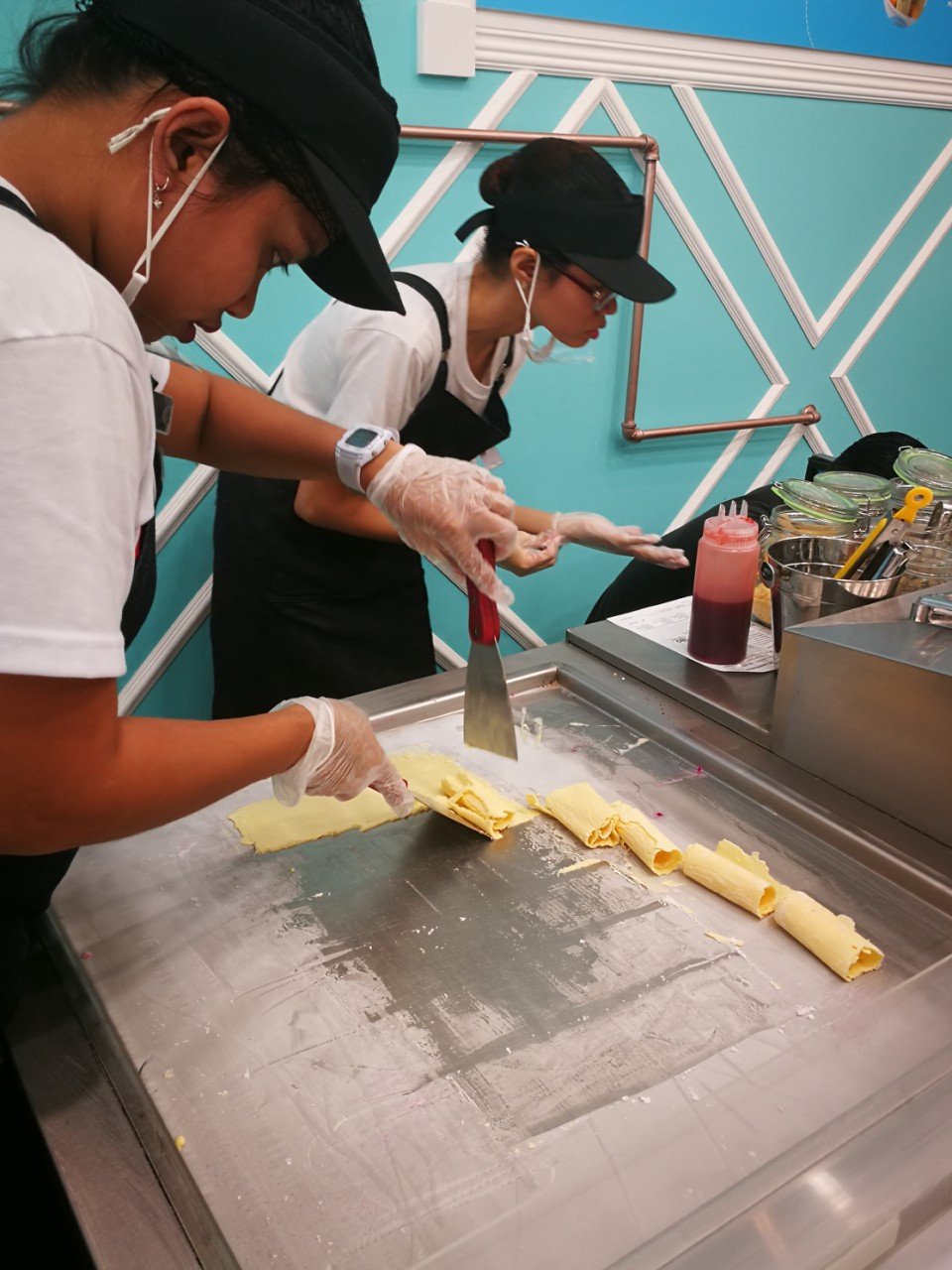 Elait supports the Philippine Deaf Community.  It is easy to spot the “talk to us in sign” poster the moment that you enter the store, because Elait hires partners with hearing impairment.  Most of its employees are from the Philippine Deaf Community. When ordering, you simply have to fill out a form and watch them do their magic as they create the ice cream rolls.  They are incredibly efficient and the obvious joy in what they do is contagious.